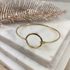 Elevate your aesthetic with this minimalist brass bangle bracelet. Featuring a sleek, strong band and a clean loop at the center, this piece exudes modern elegance. Its simple, geometric design makes it a versatile addition to any jewelry collection, whether worn solo or paired with other accessories to create a more layered look.